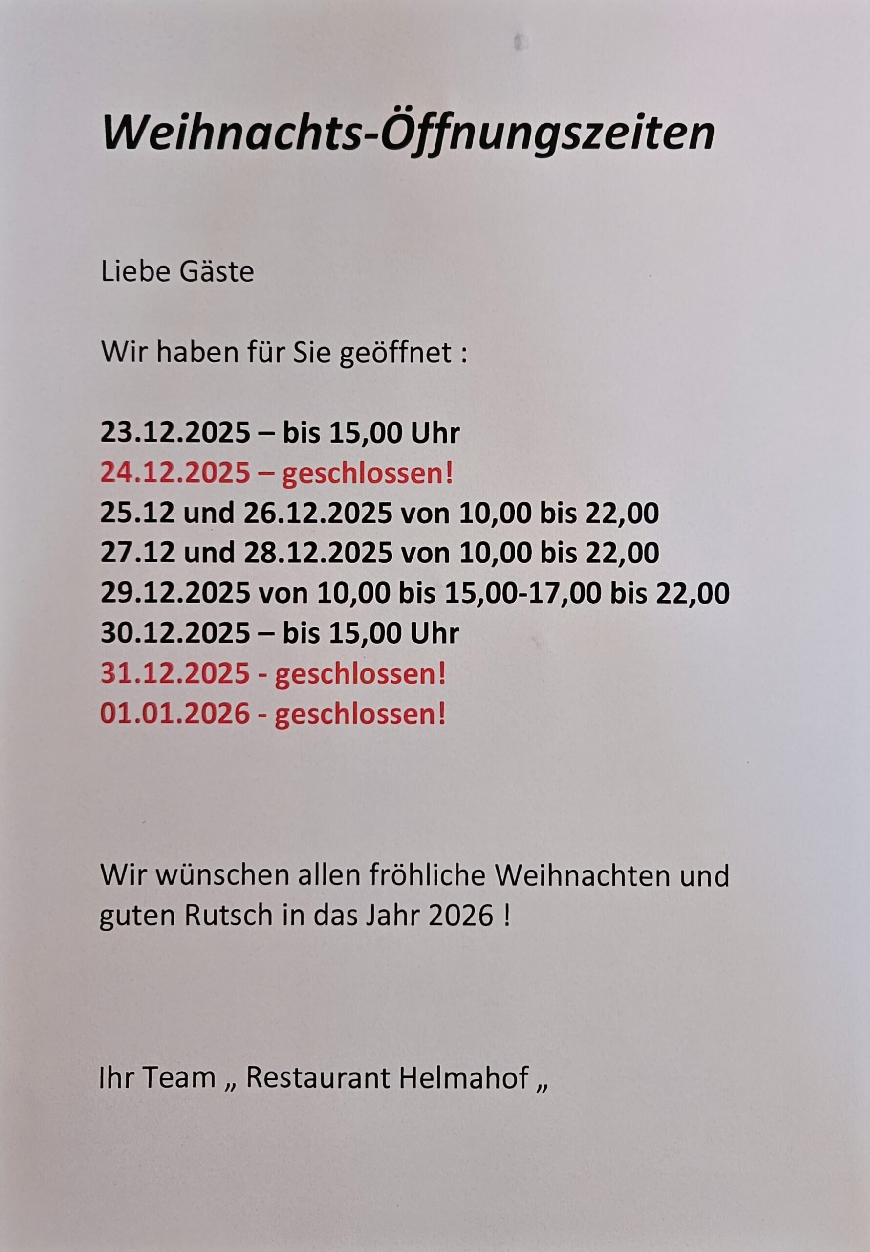 Gerne können Sie uns Ihre Nachricht auf www.facebook.com/Restaurant.Helmahof hinterlassen.