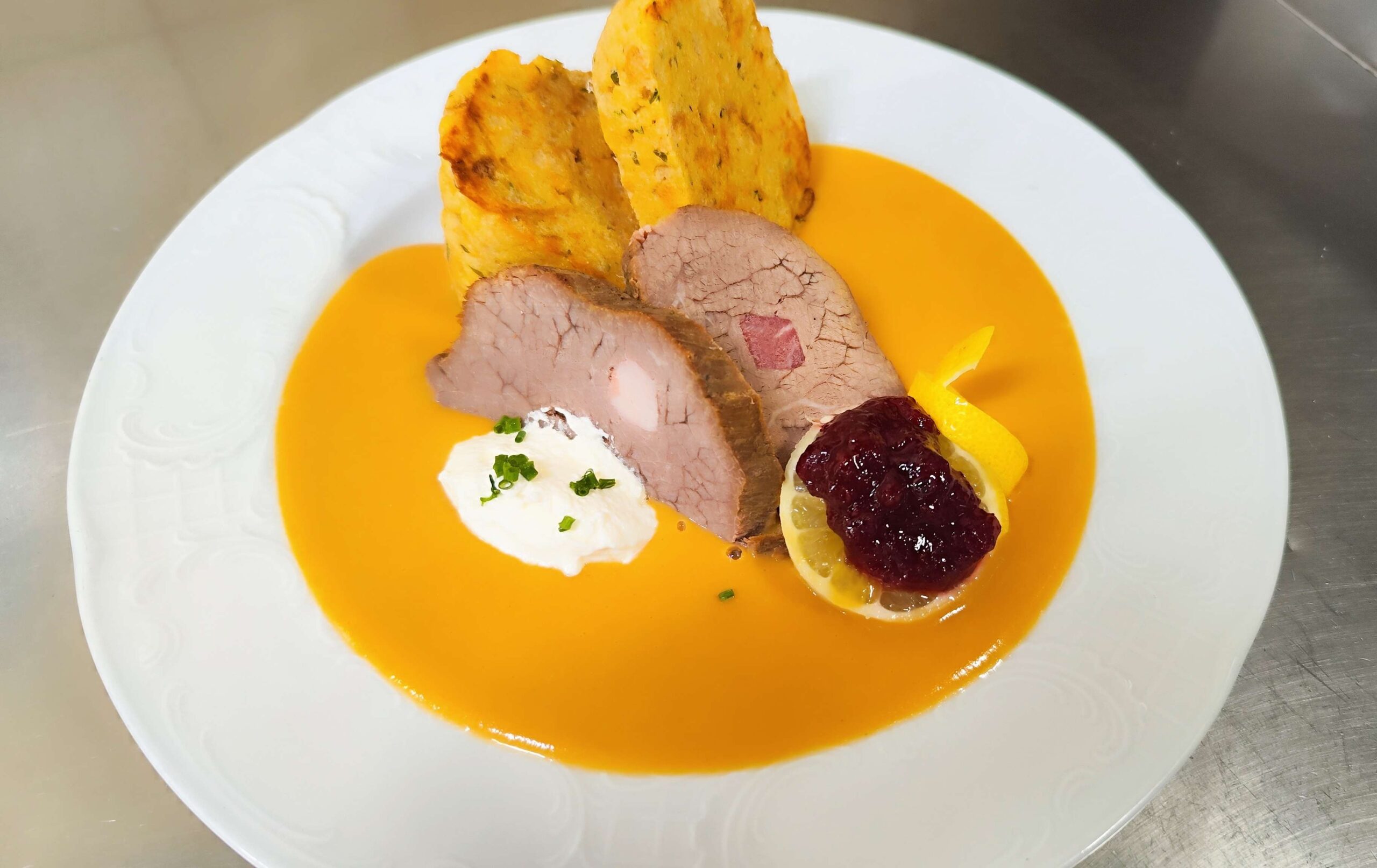 traditionelle Hausmannskost, Mittagsmenüs, Tagesmenüs und Wochenendmenüs zu fairen Preisen sowie ein reichliches a` la carte Angebot. Unsere gemütlichen Gasträume bieten bis 120 Gästen Platz. Im Sommer begrüßen wir Sie gerne in unserem großräumigen, schattigen Gastgarten- markiert durch die 100-jährige, majestätische Linde.